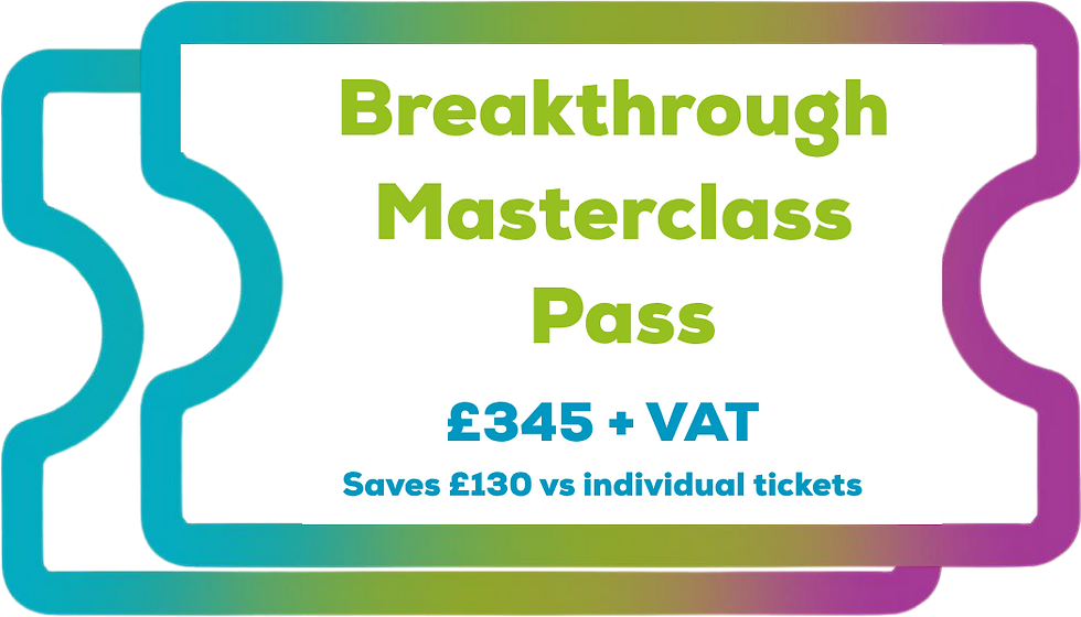 The standard price for the Breakthrough Masterclass Pass is £345 + VAT for five tickets, saving £130 compared to purchasing tickets individually.
